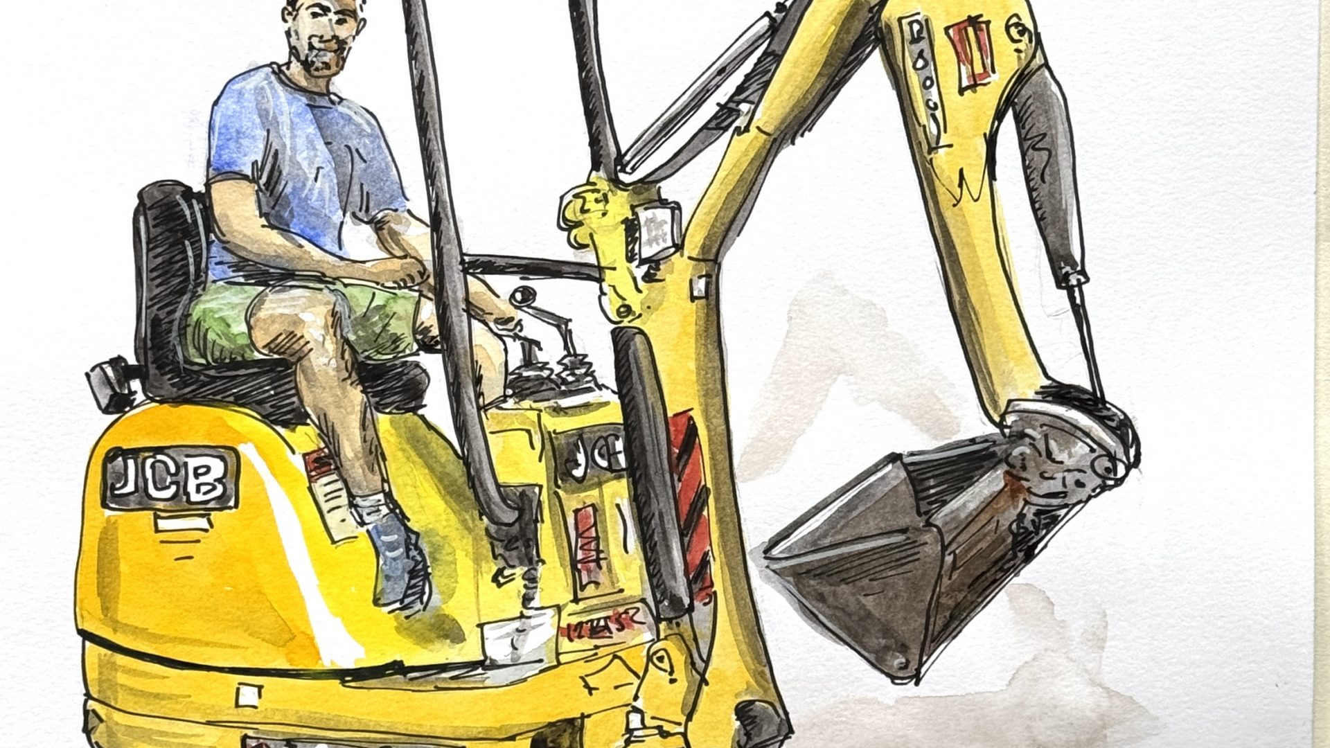 By Neal Cavalier-Smith Posted on Nov 10, 20252025 Digger Self Portrait Square Ink and watercolour, A3 Sketchbook 2025