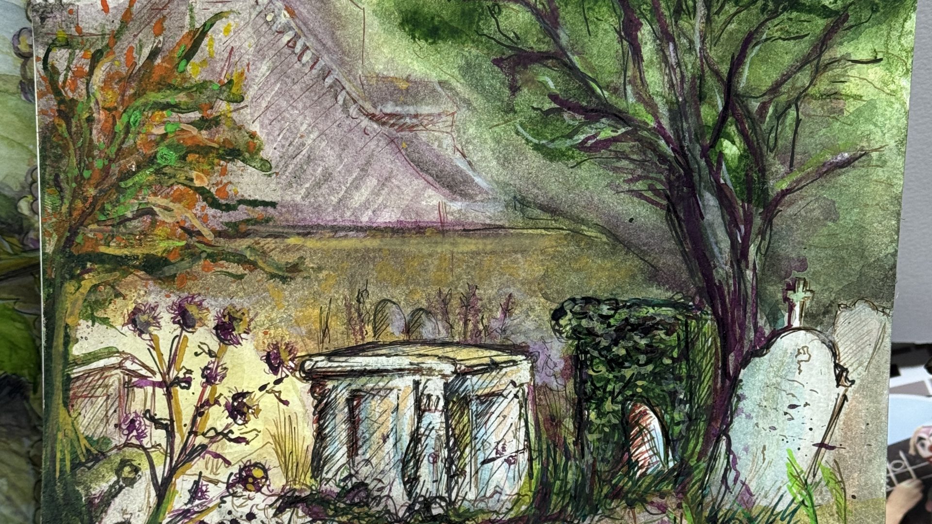 By Neal Cavalier-Smith Posted on Nov 10, 2025 Rottingdean Graveyard Square Acyrilc inks on A4 sketchpad, 2025