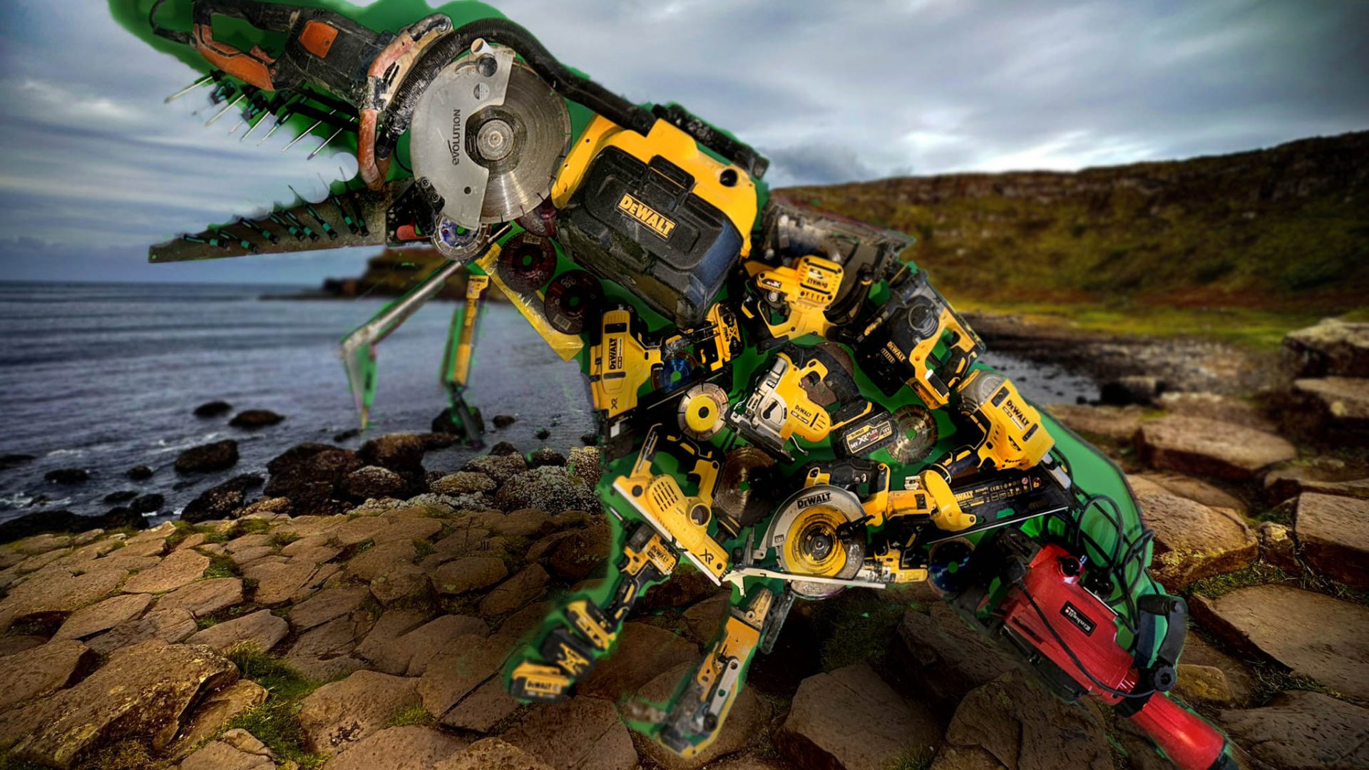 A rare sighting on the Jurassic Coast, 2025 (Physical arrangement of tools superimposed on Digital Photo)