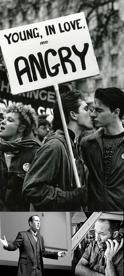 As a student activist, he co-founded the International Gay and Lesbian Youth Organisation and organised the iconic 1987 Piccadilly Circus Kiss-In against Clause 28.